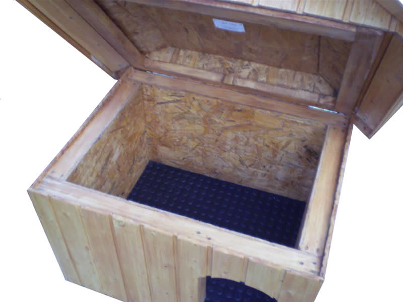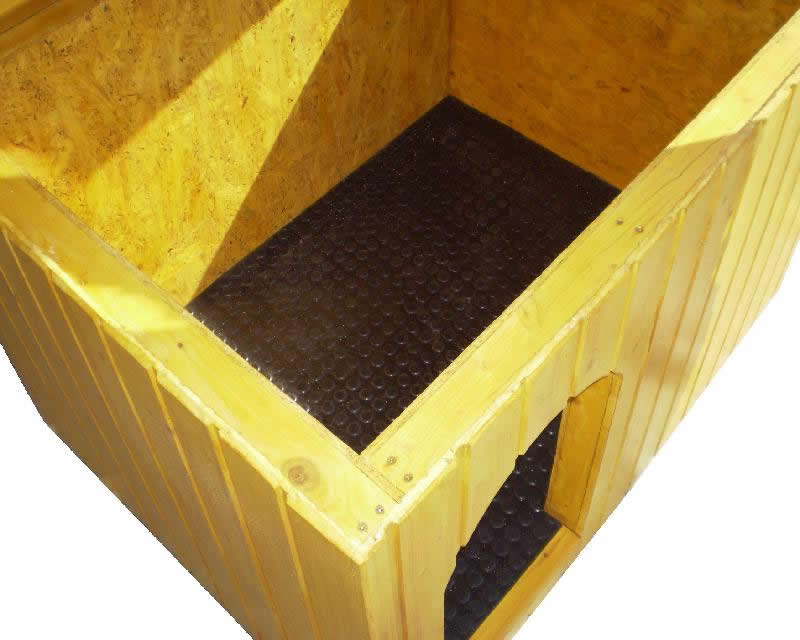 A Kutyaház.eu speciális Német minőségi gumiszőnyeget használ a kutyaházak aljzatának borítására. Előnyei, hogy biztosítja a házban a melegebb hőmérsékletet, teljesen vízálló és könnyen takarítható.